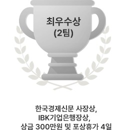 * 수상팀 제외 - 수상팀 IBK창공(기업은행 창업 플랫폼) 데모데이 참관 기회 제공,